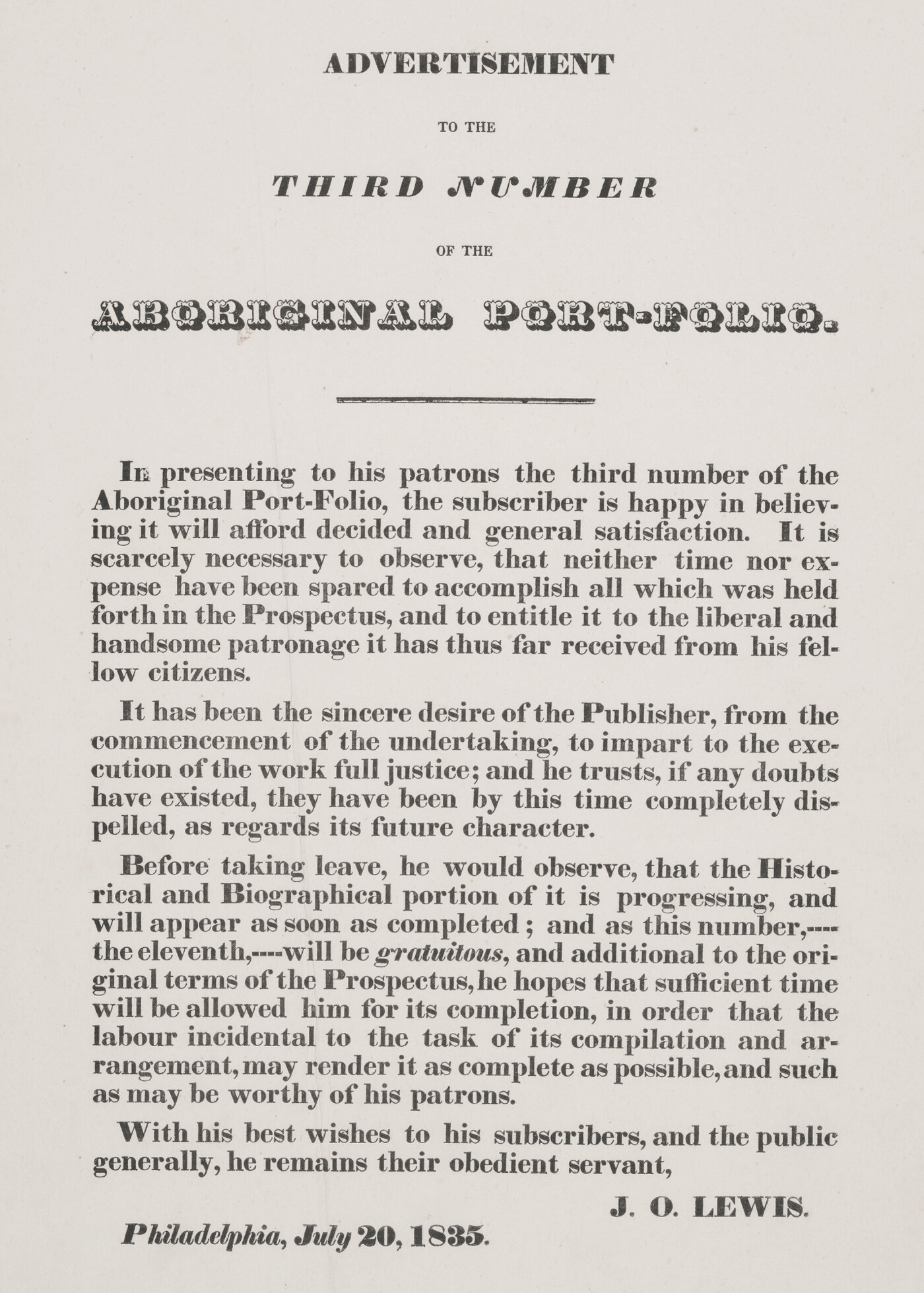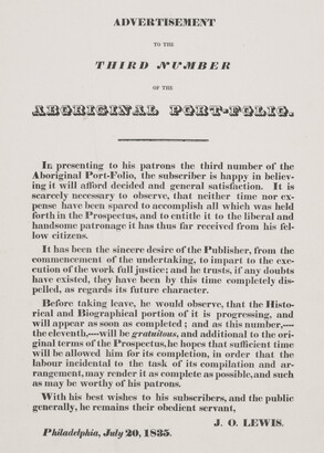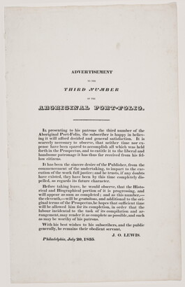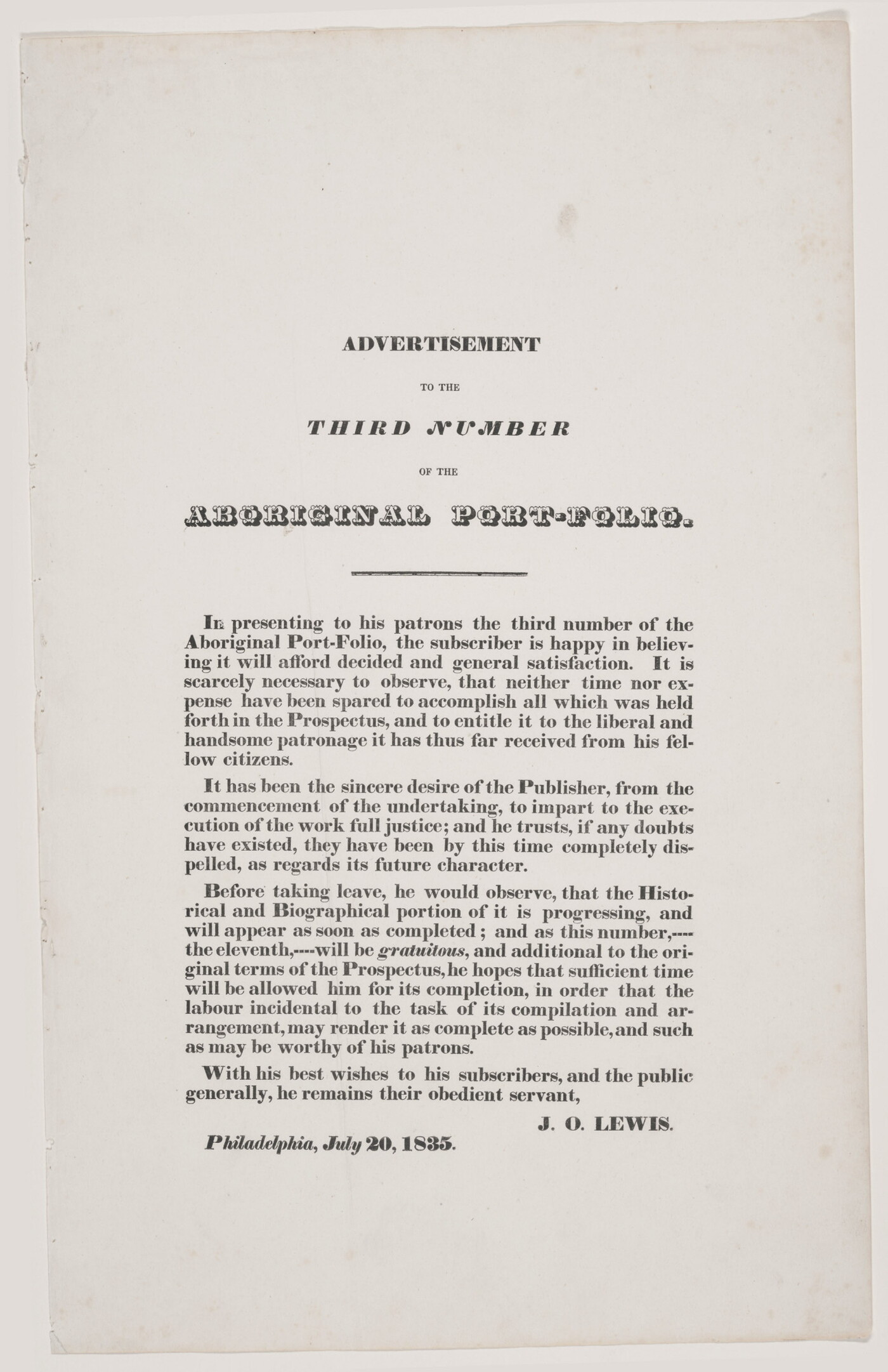 Advertisement to the Third Number of the Aboriginal Portfolio.
