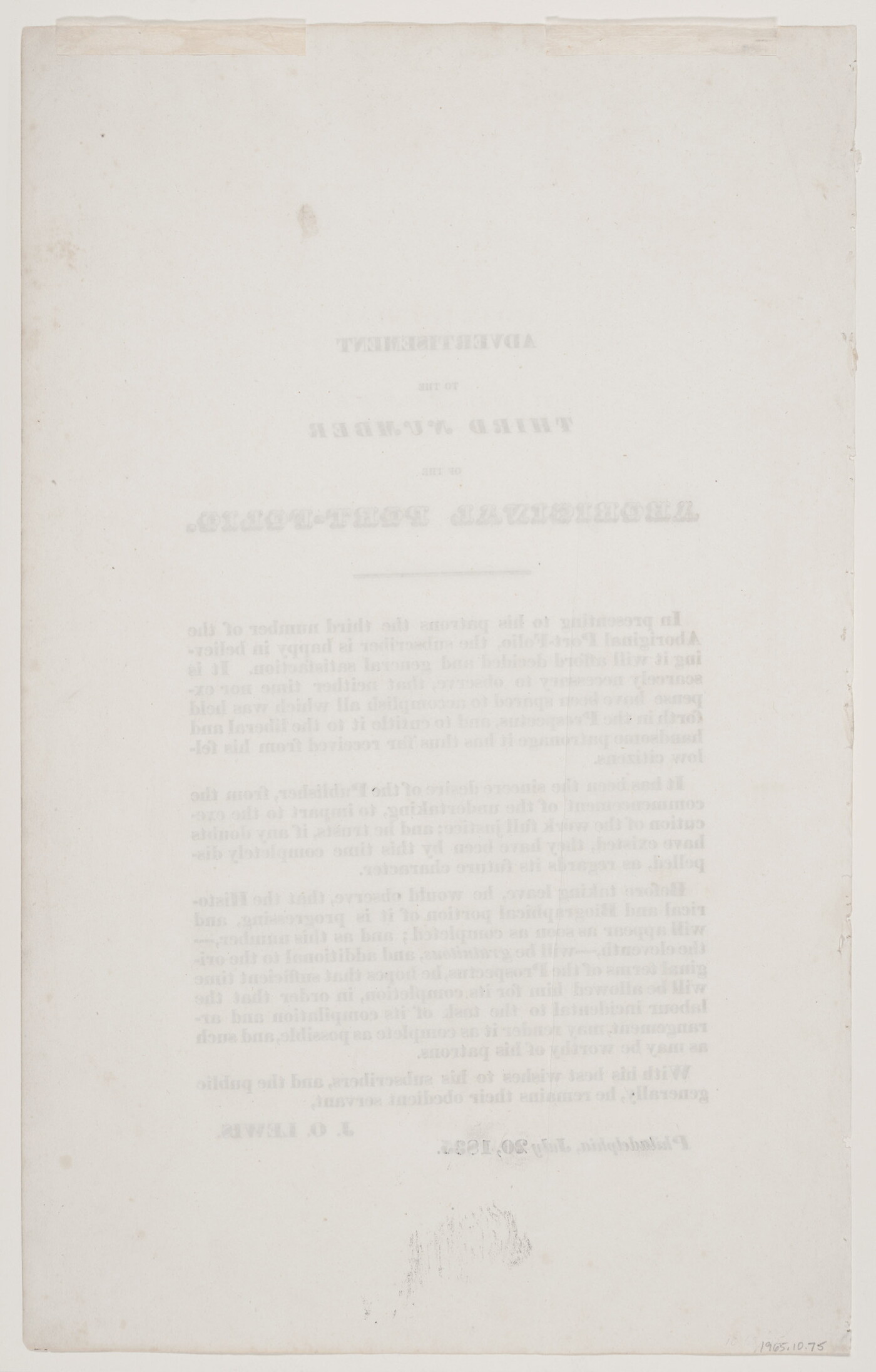 u.c.: ADVERTISEMENT \ TO THE \ THIRD NUMBER \ OF THE \ ABORIGINAL PORT-FOLIO.