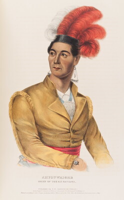 l.c. engraved on stone: AHYOUWAIGHS \ CHIEF OF THE SIX NATIONS \ PUBLISHED BY F.W. GREENOUGH, PHILAD.A \ Drawn Printed & Coloured at I.T. Bowen's Lithographic Establishment No. 94 Walnut St. \ Entered according to act of Congress in the Year 1838 by F.W. Greenough in the Clerks Office of the District Court of the Eastern District of Penn.a