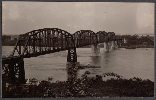 [View of bodies of water from tree-lined street on a hill], ca. 1900-1910
