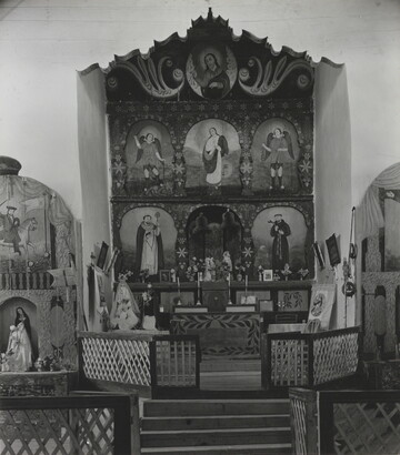 u.c. on paper label: [printed]: A PHOTOGRAPH \ By LAURA GILPIN \ COLORADO SPRINGS . COLORADO \ TITLE: [typed]: ALTAR AT TRAMPAS. N.M.