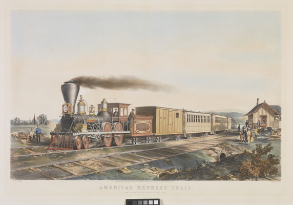 l.c.: Entered according to Act of Congress in the year 1855 by N. Currier, in the Clerk's office of the District Court of the Southern District of N.Y. \ AMERICAN "EXPRESS" TRAIN. \ NEW YORK. PUBLISHED BY N. CURRIER, 152 NASSAU STREET.