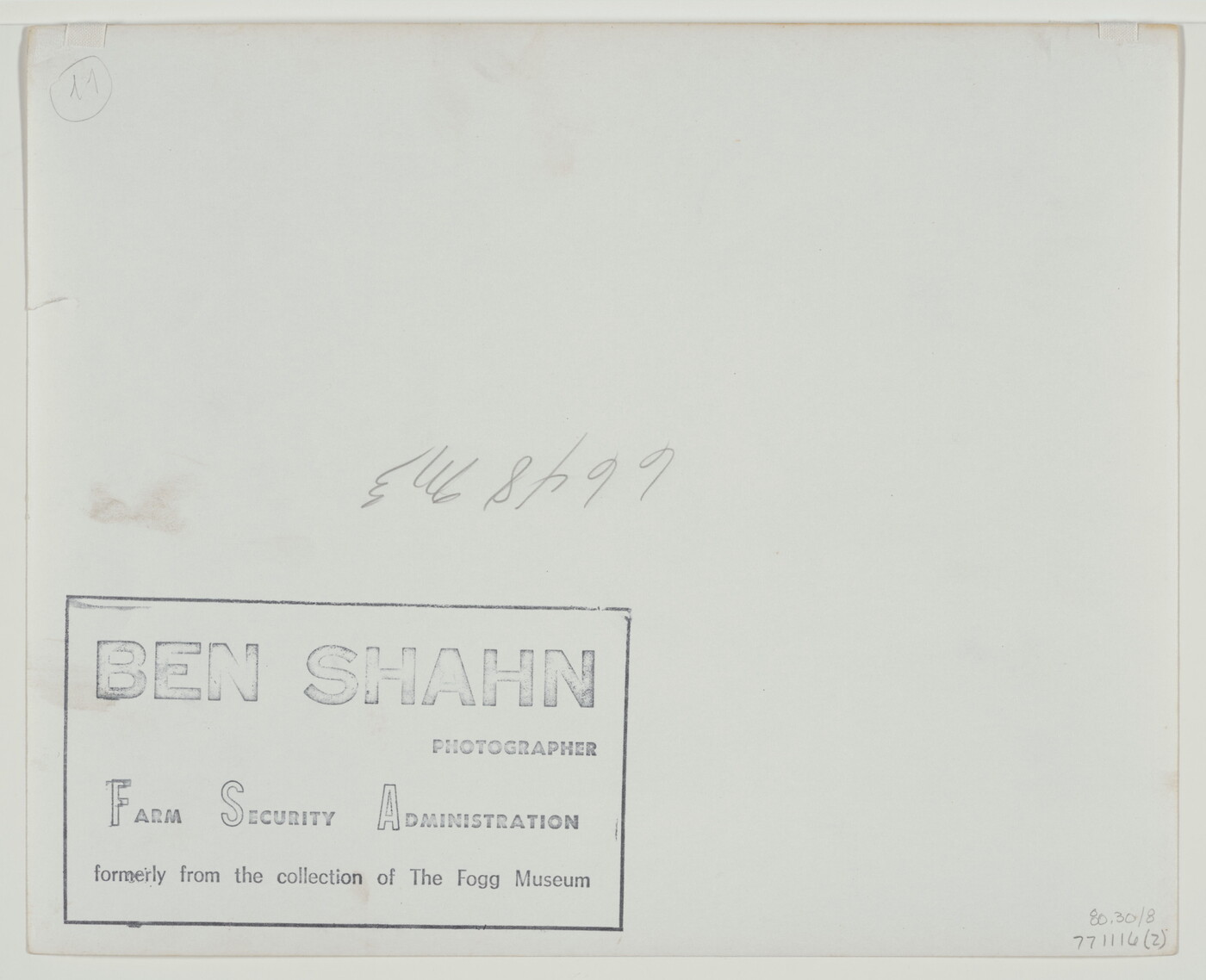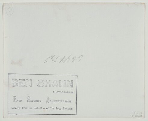 l.l. [stamp]: BEN SHAHN \ PHOTOGRAPHER \ FARM SECURITY ADMINISTRATION \ formerly from the collection of The Fogg Museum
