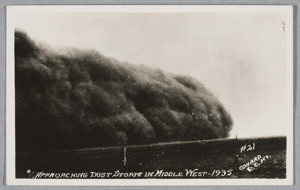 l.l. to l.r. printed in negative: APPROACHING DUST STORM IN MIDDLE WEST - 1935