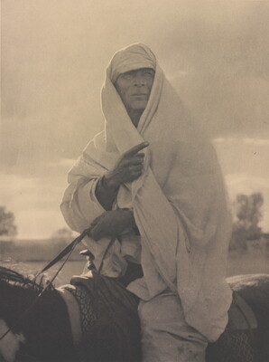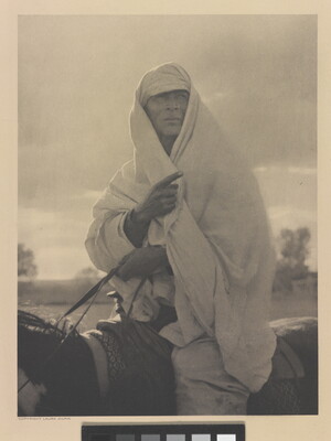 u.c. printed on paper label: ARAB OF THE AMERICAN DESERT \ Copyright - 1926 \ A photogravure reproduction \ from original photograph \ by Laura Gilpin \ Colorado Springs, Colorado