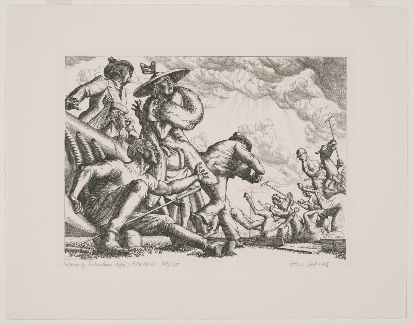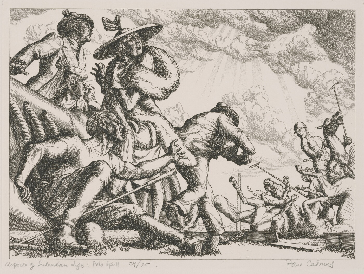 l.l. beneath image, in graphite: Aspects of Suburban Life: Polo Spill 29/75