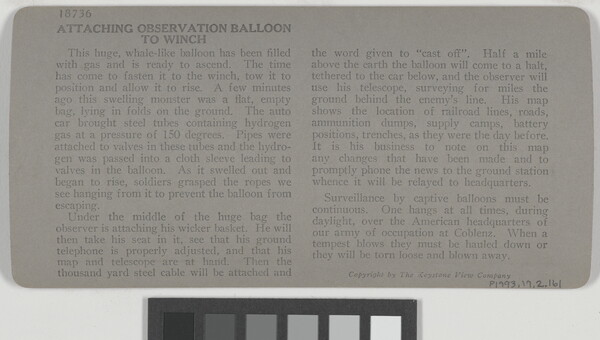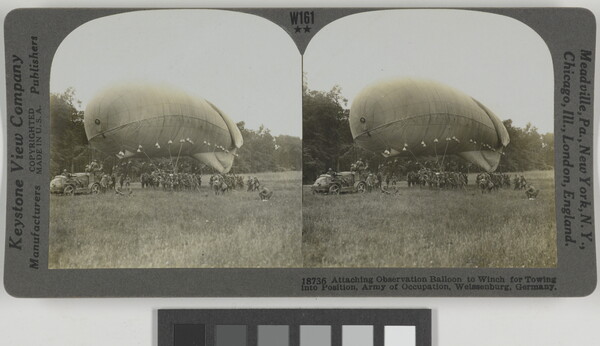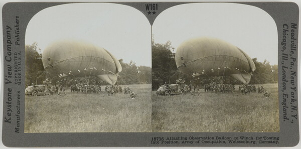 l.r. printed: 18736 Attaching Observation Balloon to Winch for Towing \ into Position, Army of Occupation, Weissenburg, Germany.