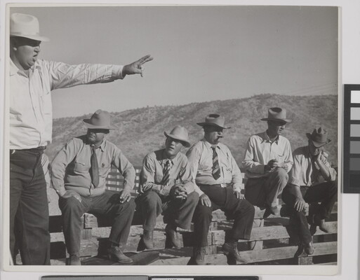 c. in graphite: Auctioneer at San Carlos \ Apache cattle sale -