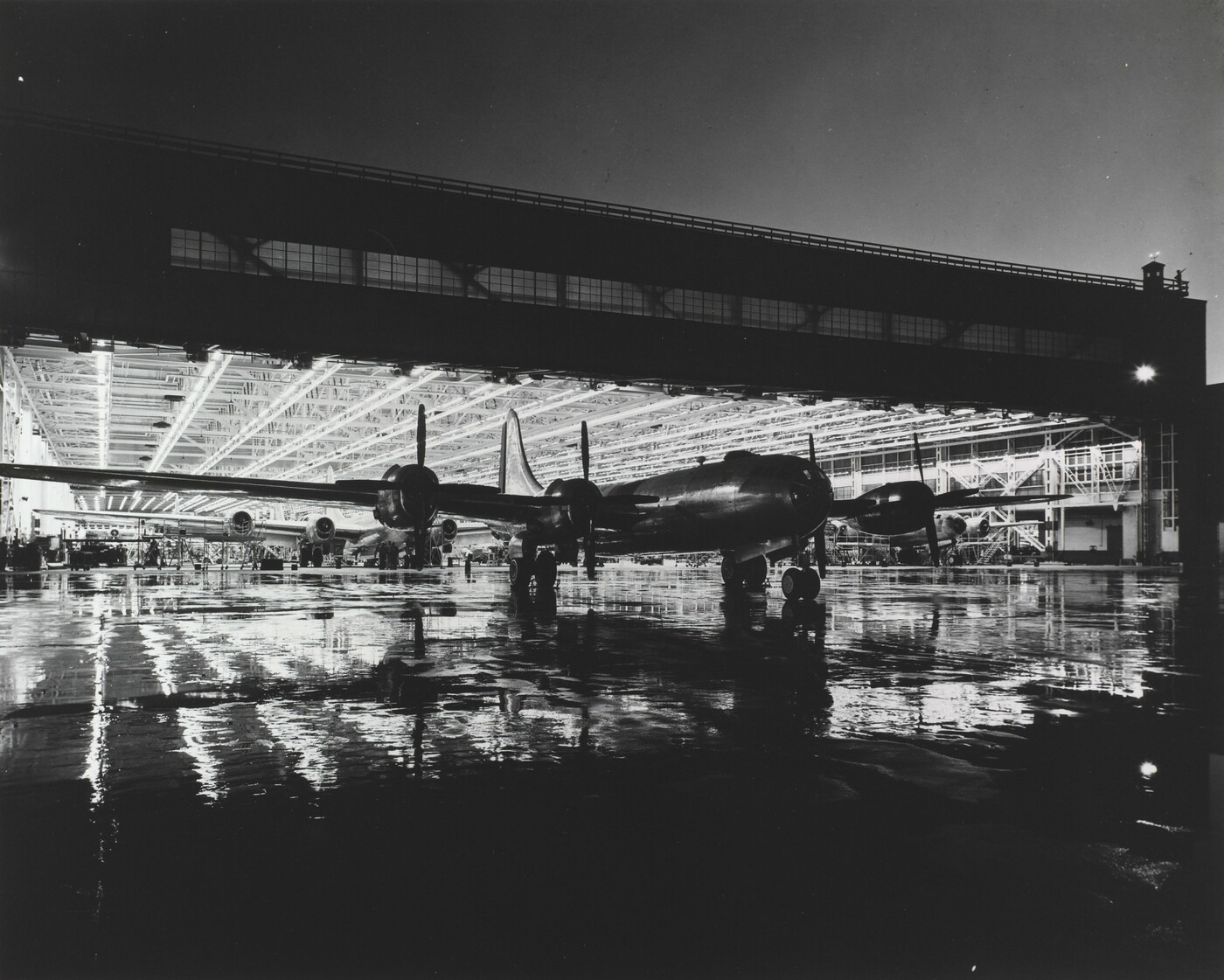u.c. on paper label: [printed]: A PHOTOGRAPH \ By LAURA GILPIN \ COLORADO SPRINGS . COLORADO \ TITLE: [typed]: B-29 BOMBER COMING OUT OF THE \ FACTORY 1945 [sic]