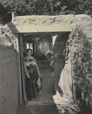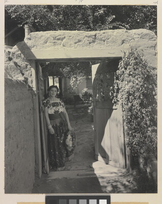 l.c. typed on paper label: BACK GATE OF PATIO. \ LA PLACITA. OLD ALBUQ ERQUE [sic]. NEW MEXICO. \ Photograph by Laura Gilpin, Copyright. \ Gilpin Publishing Co., Colorado Springs, Colorado.