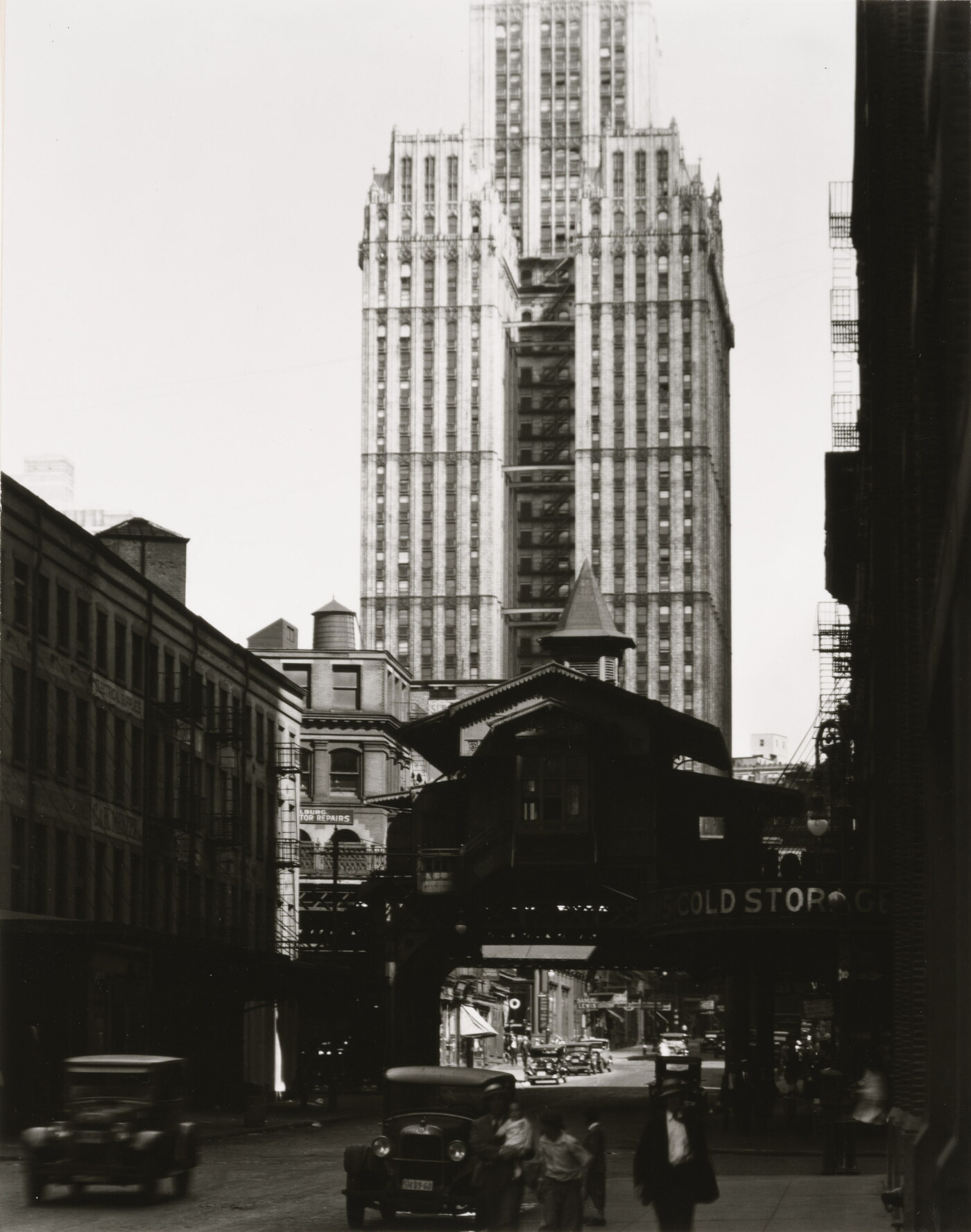 [Pearl Street, looking north under the elevated towards Ferry Street], 1936