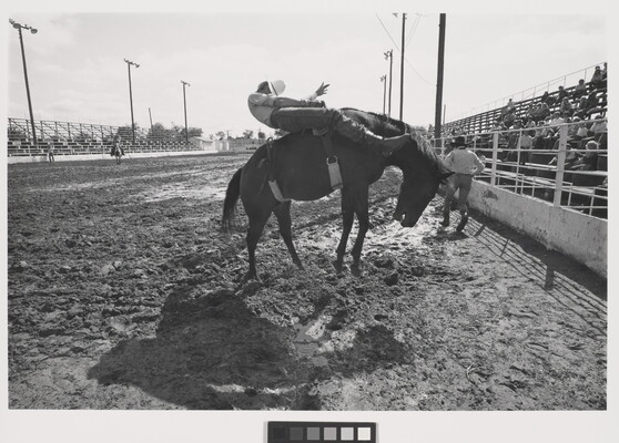u.c. in graphite: Bareback Bronc Rider, \ High School Rodeo \ Cleburne, Tx 1984 \ [copyright] Luther Smith