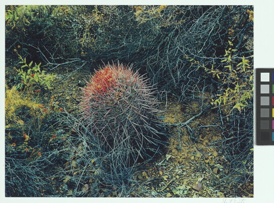 u.l. [stamp]: PHOTOGRAPH \ By \ ELIOT PORTER \ No. [in ink]: 66-2928 \ [stamp]: Title [in ink]: Barrel Cactus \ Baja California