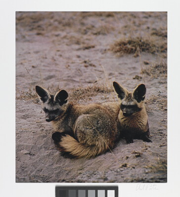 u.l. [stamp]: PHOTOGRAPH \ By \ ELIOT PORTER \ No. [in ink]: 70-1927 \ [stamp]: Title [in ink]: Bat eared foxes \ Africa