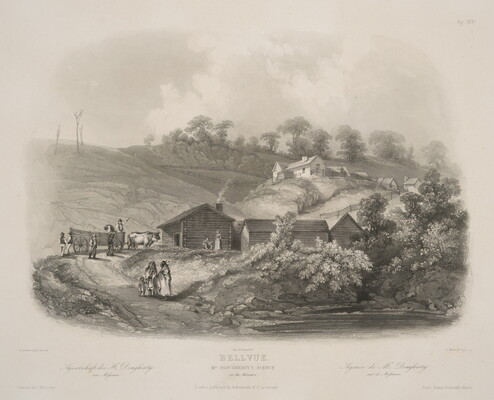 l.c.:Imp. de Bougeard \ BELLVUE \ MR. DOUGHTERY'S AGENCY \ on the Missouri \ London, published by Ackermann & Co. 90, Strand \ [blind stamp]