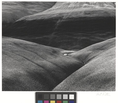 u.l. [stamp]: PHOTOGRAPH \ By \ ELIOT PORTER \ No. [in ink]: 63-126 \ [stamp]: Title [in ink]: BENTONITE MOUNDS \ HEARTNUT DESERT \ UTAH 1963