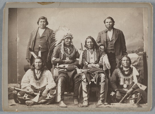 Big Elk, Standing Buffalo Bull, White Eagle, Standing Bear and Baptiste Barnaby [left] and Charles LeClair [right], Two Interpreters of the Ponca Delegation