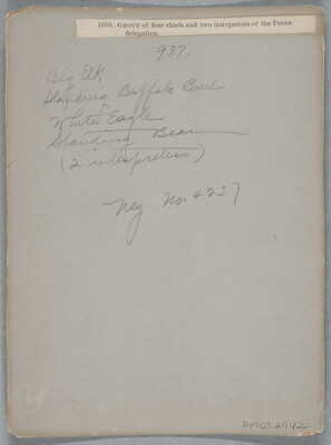 u.c. to c. in graphite: 987. \ Big Elk \ Standing Buffalo Bull \ White Eagle \ Standing Bear \ (2 interpreters) \ Neg. No. 4237