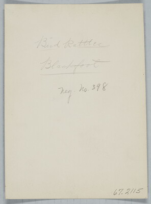 u.c. in graphite: Bird Rattler \ Blackfoot \ Neg. No. 398