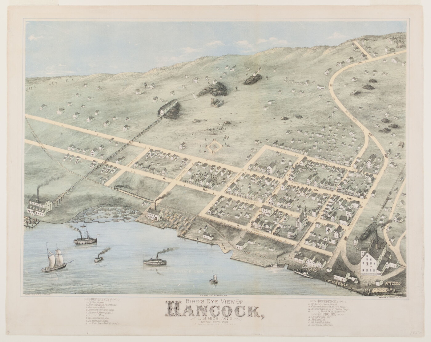 Bird's Eye View of Hancock, L. S. Mich. 1873. Looking North West