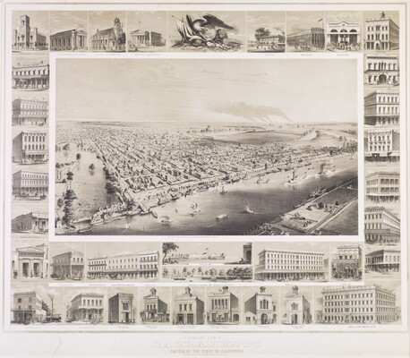 l.c.: A BIRDS-EYE VIEW OF; \ SACRAMENTO \ CAPITAL OF THE STATE OF CALIFORNIA \ POP. 20,000 \ Designed, drawn & Published by G.J. Baker \ 1848 \ LITH. BRITTON & REY S.F.