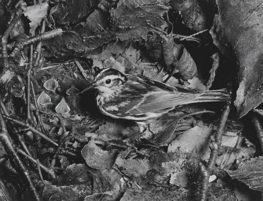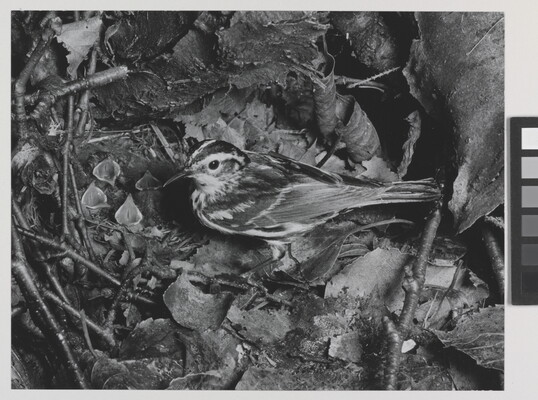c. [stamp]: PHOTOGRAPH \ BY \ ELIOT PORTER \ [in graphite]: Black and White Warbler [male symbol]