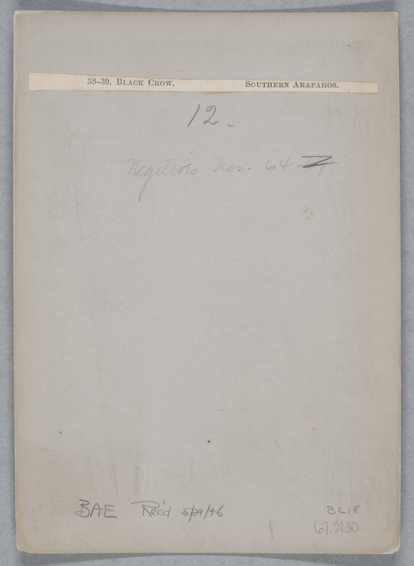 u.l. to u.r. printed on paper: 38-39. BLACK CROW. SOUTHER ARAPAHOS.