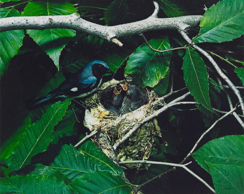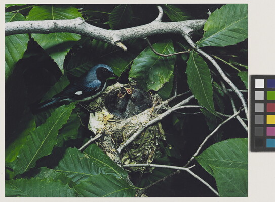 u.l. [stamp]: PHOTOGRAPH \ By \ ELIOT PORTER \ No. [in ink]: 15-13-33-6 \ [stamp]: Title [in ink]: Black-throated \ Blue Warbler, [male symbol]