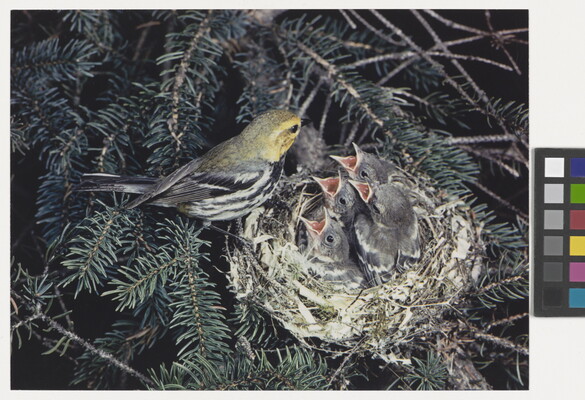 u.l. [stamp]: PHOTOGRAPH \ By \ ELIOT PORTER \ No. [in ink]: 15-13-2-22 \ [stamp]: Title [in ink]: Black-throated \ Green Warbler, [male symbol]