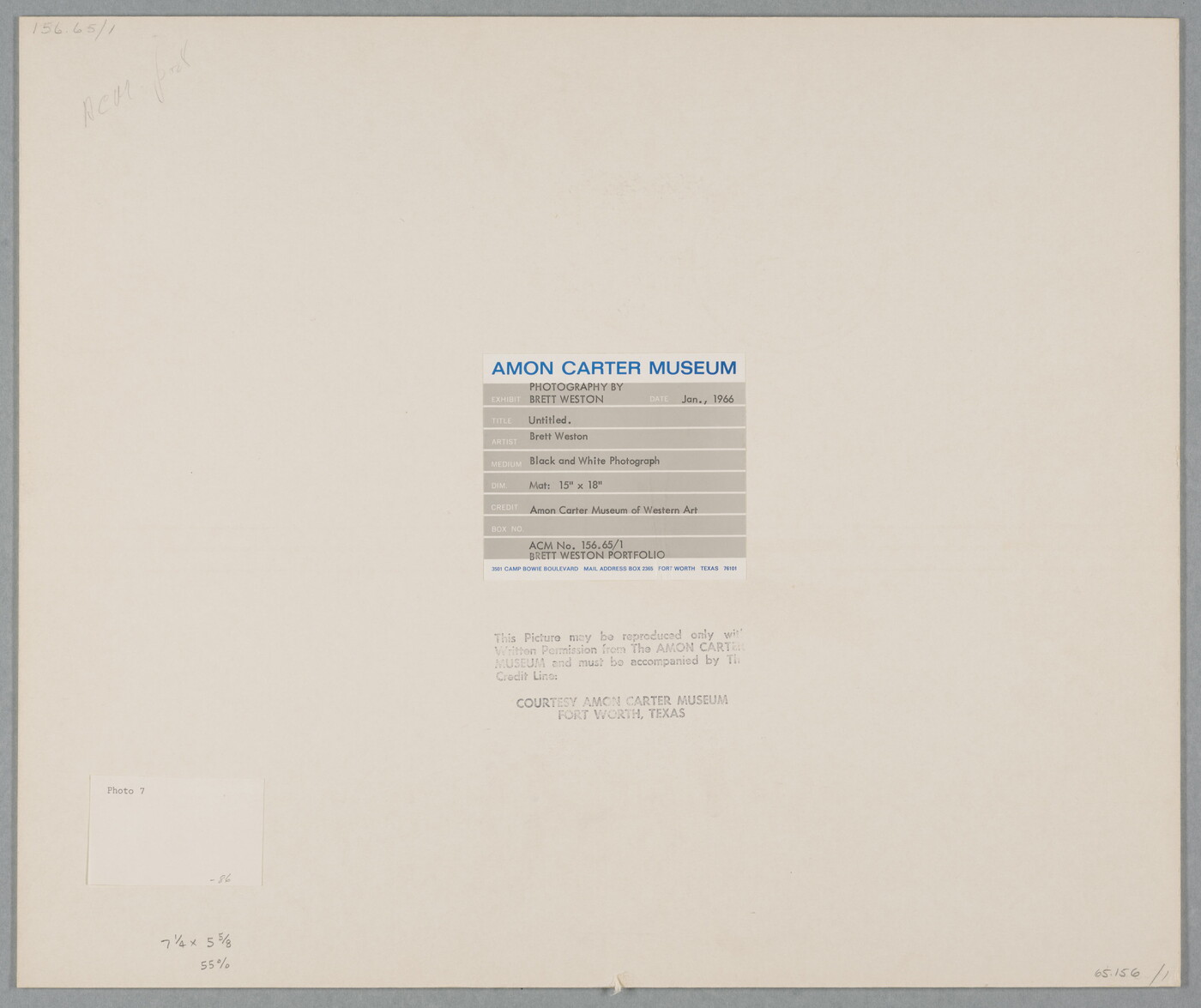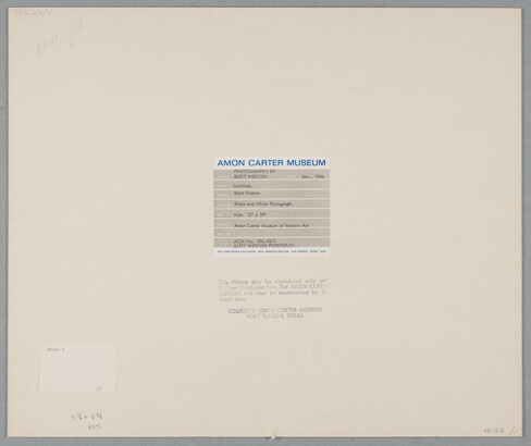 c. [stamp]: This Picture may be reproduced only with \ Written Permission from the AMON CARTER \ MUSEUM and must be accompanied by The \ Credit Line: \ COURTESY AMON CARTER MUSEUM \ FORT WORTH, TEXAS