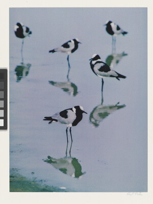 u.l. [stamp]: PHOTOGRAPH \ By \ ELIOT PORTER \ No. [in ink]: Feb. 1970 No. 23 \ [stamp]: Title [in ink]: Blacksmith Plovers \ [in graphite]: Africa
