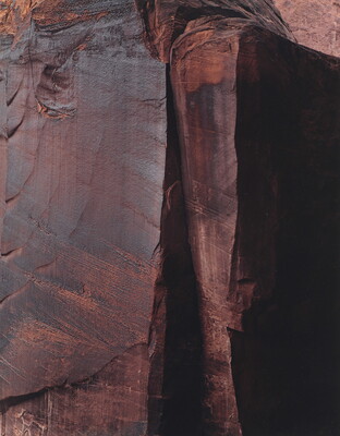 u.l. [stamp]: PHOTOGRAPH \ By \ ELIOT PORTER \ No. [in ink]: 65-155 \ [stamp]: Title [in ink]: BLUE CLIFF, \ GLEN CANYON, UTAH