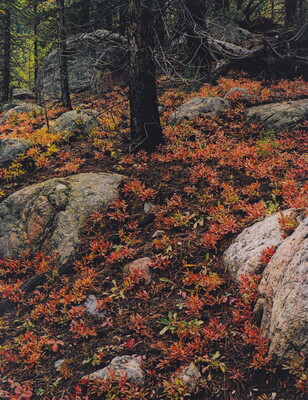 Blueberry Bushes, Rocks, Spruce Trunks, Independence Pass Road, Colorado, September 16, 1959