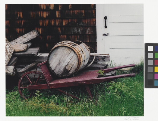 u.l. [stamp]: PHOTOGRAPH \ By \ ELIOT PORTER \ No. [in ink]: 81-7 \ [stamp]: Title [in ink]: Wheelbarrow \ G.S.H.I., Maine