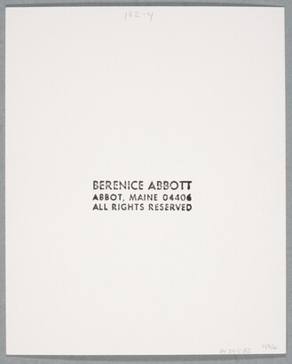 c. [stamp]: BERENICE ABBOTT \ ABBOT, MAINE 04406 \ ALL RIGHTS RESERVED