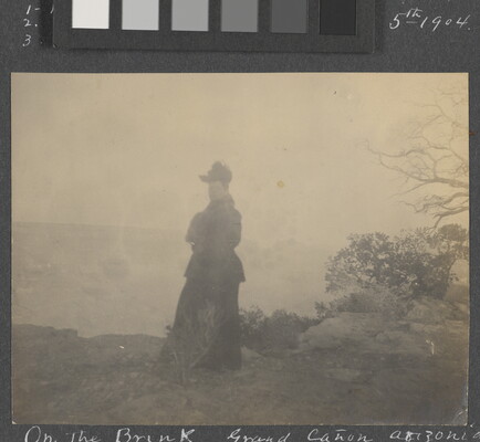 l.l. to l.r. in ink: On the Brink Grand Canon Arizona \ Nearly 6000 feet Down to the River and 13 miles \ to the other wall. \ March 5th 1904.