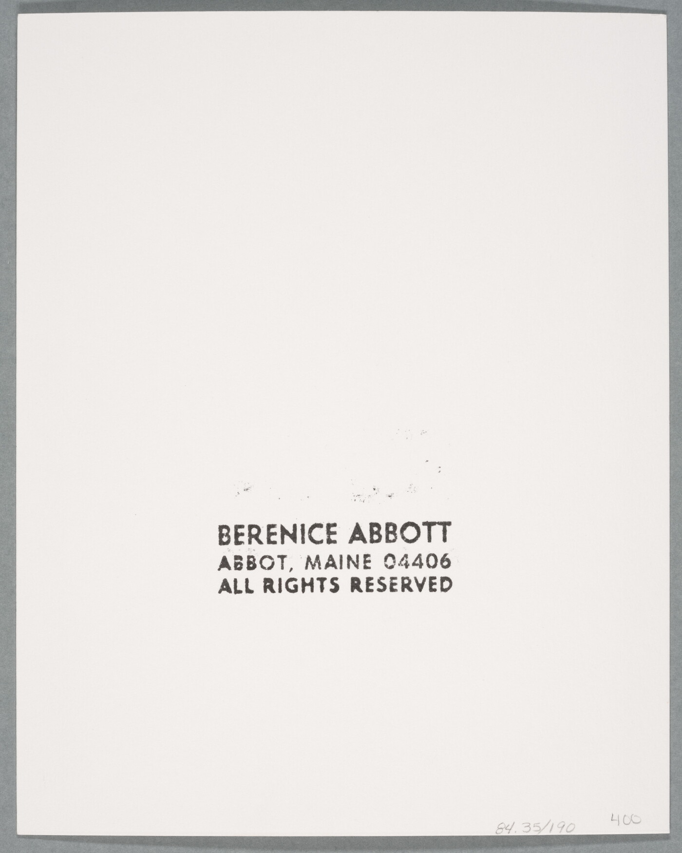 c. [stamp]: BERENICE ABBOTT \ ABBOT, MAINE 04406 \ ALL RIGHTS RESERVED