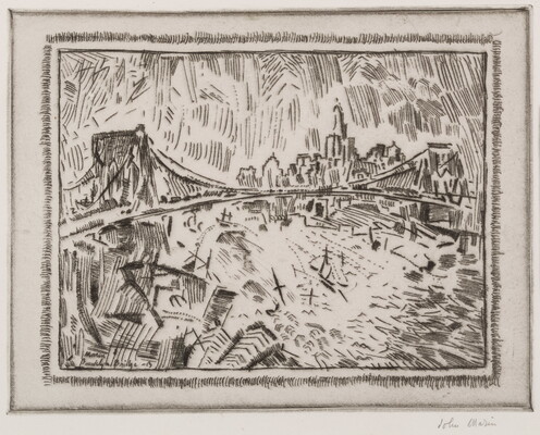 u.l in graphite: Brooklyn Bridge and Lower N.Y. 1913 second State \ B.102 - First use of Frame \ Within Frame \ About 25 Prints \ For sale