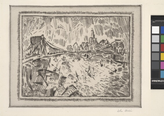 inscribed, l.l. in image: Marin \ Brooklyn Bridge - 13