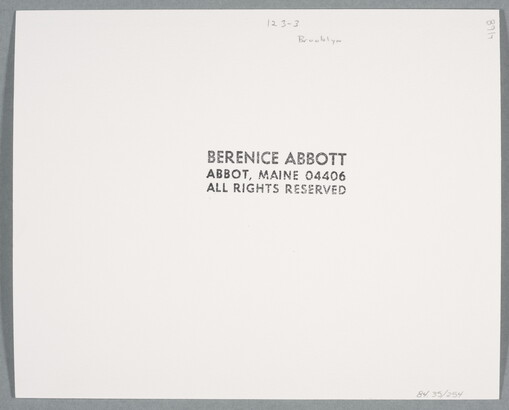 c. [stamp]: BERENICE ABBOTT \ ABBOT, MAINE 04406 \ ALL RIGHTS RESERVED