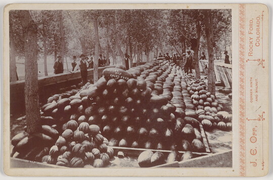 c. [vertical] in graphite: 1 [illeg.] \ [printed] Chas. Bohm \ Photographer, \ 284 Fifteenth St. \ DENVER, COL. \ Negatives preserved. \ Duplicates may be obtained at any time.