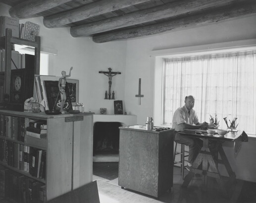 u.c. on paper label: [printed]: A PHOTOGRAPH BY \ LAURA GILPIN \ SANTA FE, NEW MEXICO \ [typed]: CADY WELLS IN HIS STUDIO \ 1954