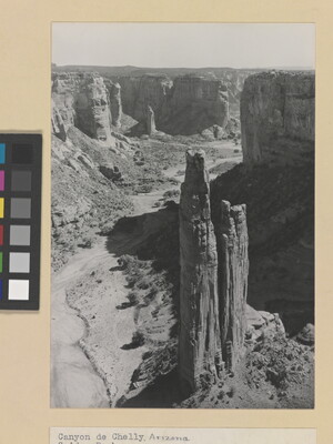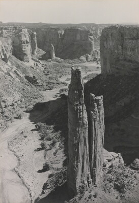 l.c. typed on paper label: Canyon de Chelly [in graphite]: Arizona \ [typed]: Spider Rock. \ Copyright, Laura Gilpin, Santa Fe, New Mexico