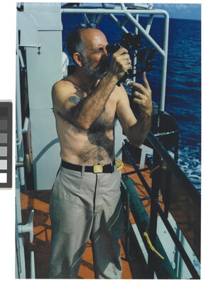 u.l. [stamp]: PHOTOGRAPH \ By \ ELIOT PORTER \ No. [in ink]: Roll 1-1, No. 38 \ [stamp]: Title [in ink]: Capt. Pieter Lenie \ R/V Hero