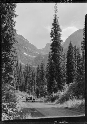[Car on dirt road, Glacier National Park]