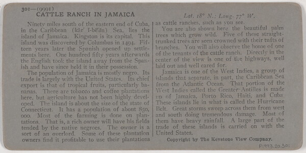 l.r. printed: 9991 - A Cattle Ranch in Jamaica.