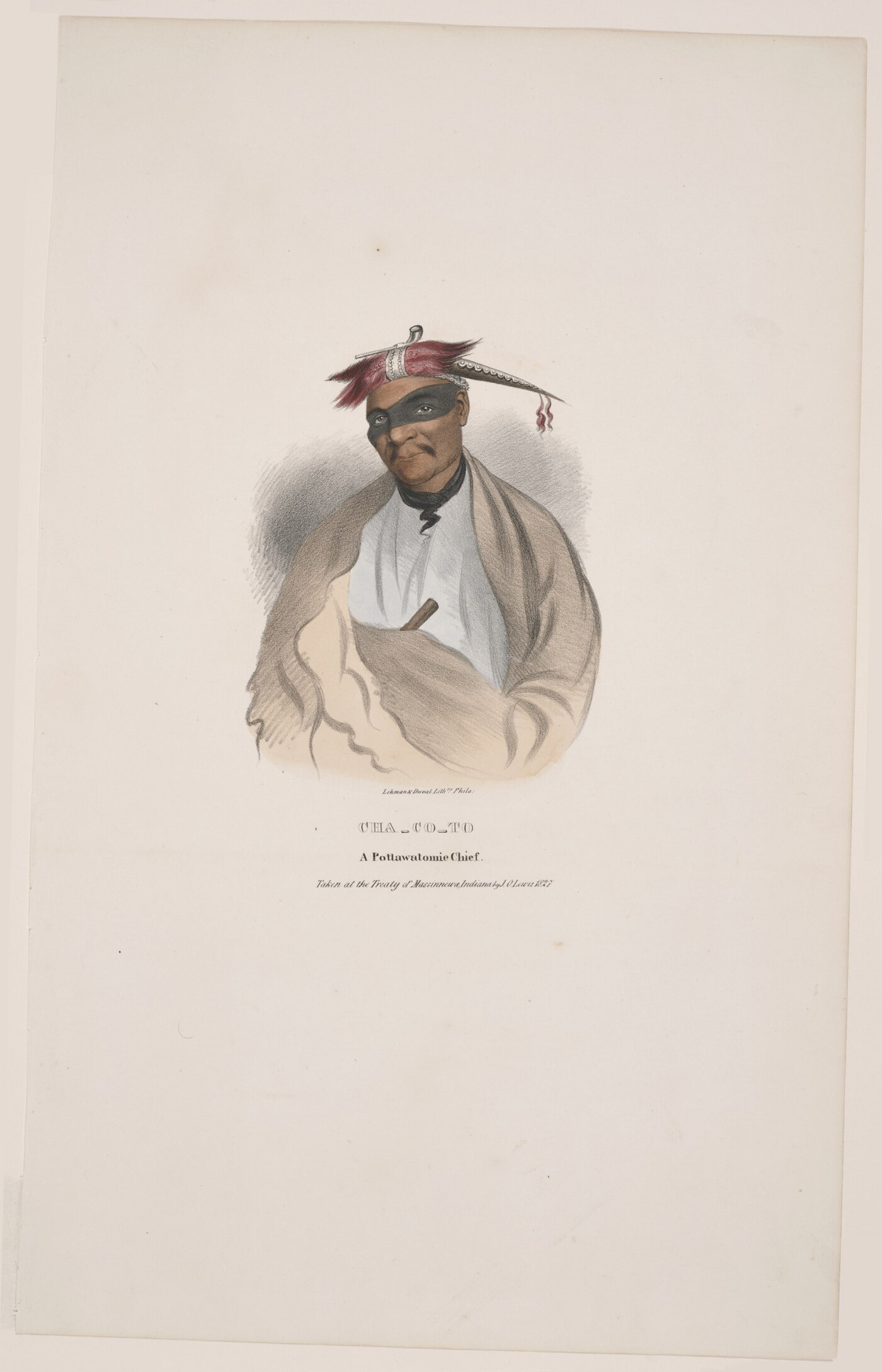 l.c.: Lehman & Duval Lith[rs]. Phila. \ CHA-CO-TO \ A Pottawatomie Chief. \ Taken at the Treaty of Massinnewa, Indiana by J.O. Lewis 1827.