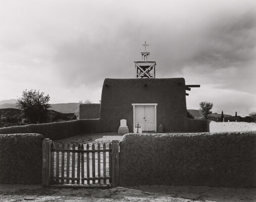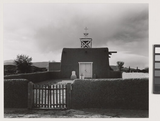 c. [stamp]: PHOTOGRAPH \ BY \ ELIOT PORTER \ [in graphite]: Church in Chamita \ N.M.