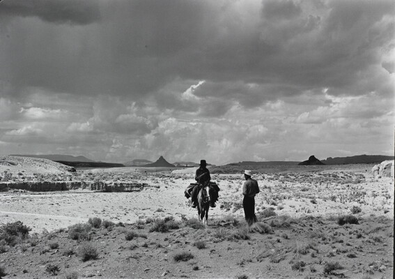 u.c. on paper label: [printed]: LG \ A PHOTOGRAPH BY \ LAURA GILPIN \ SANTA FE, NEW MEXICO \ [typed]: A CHANCE MEETING \ 1950 \ from The Enduring Navaho \ University of Texas Press. Publishers