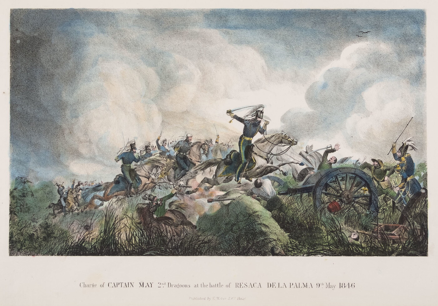l.c.: Charge of CAPTAIN MAY 2nd Dragons at the battle of RESACA DELA PALMA 9th May 1846 / Published by E. Weber & Co.